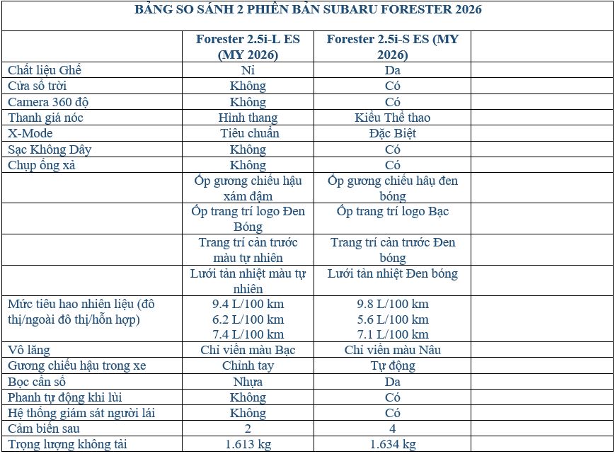 Phiên bản Forester 2.5i-S EyeSight được trang bị thêm: Camera toàn cảnh 360; Cửa sổ trời; Ghế da tuỳ chọn; Sạc không dây; Thanh giá nóc Thể thao; Hệ thống giám sát người lái, Phanh tự động khi lùi; Các chi tiết lưới tản nhiệt.... Liên hệ Hotline 0976 566 469 để nhận thêm thông tin